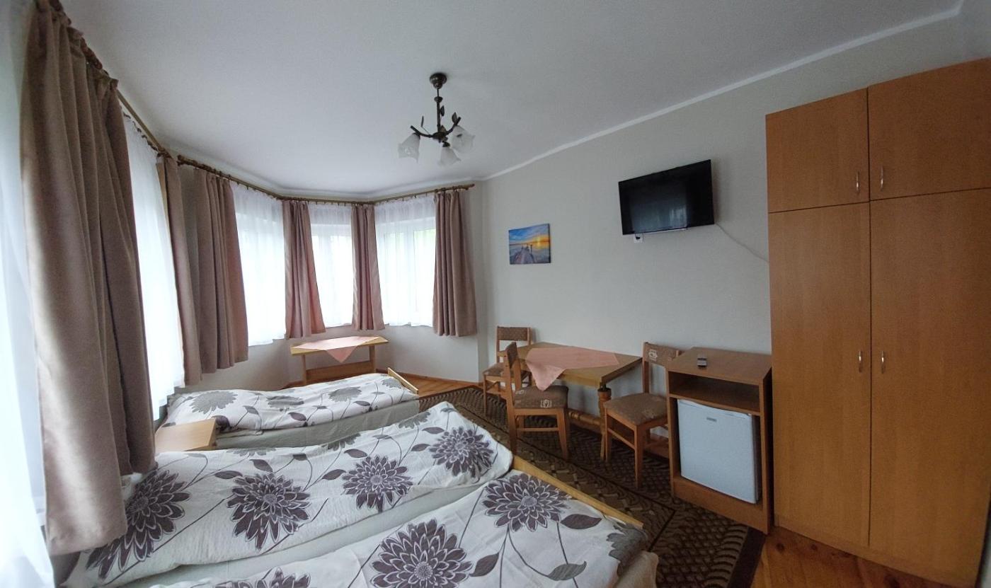 Pokój trzyosobowy. The triple room offers a dining area, a wardrobe, as well as a private bathroom featuring a shower. The triple room provides a flat-screen TV, a barbecue, parquet floors and a carpeted floor. Pokój Trzyosobowy - 3 osobowy. Powierzchnia pokoju ok.: 16 mkw. ;